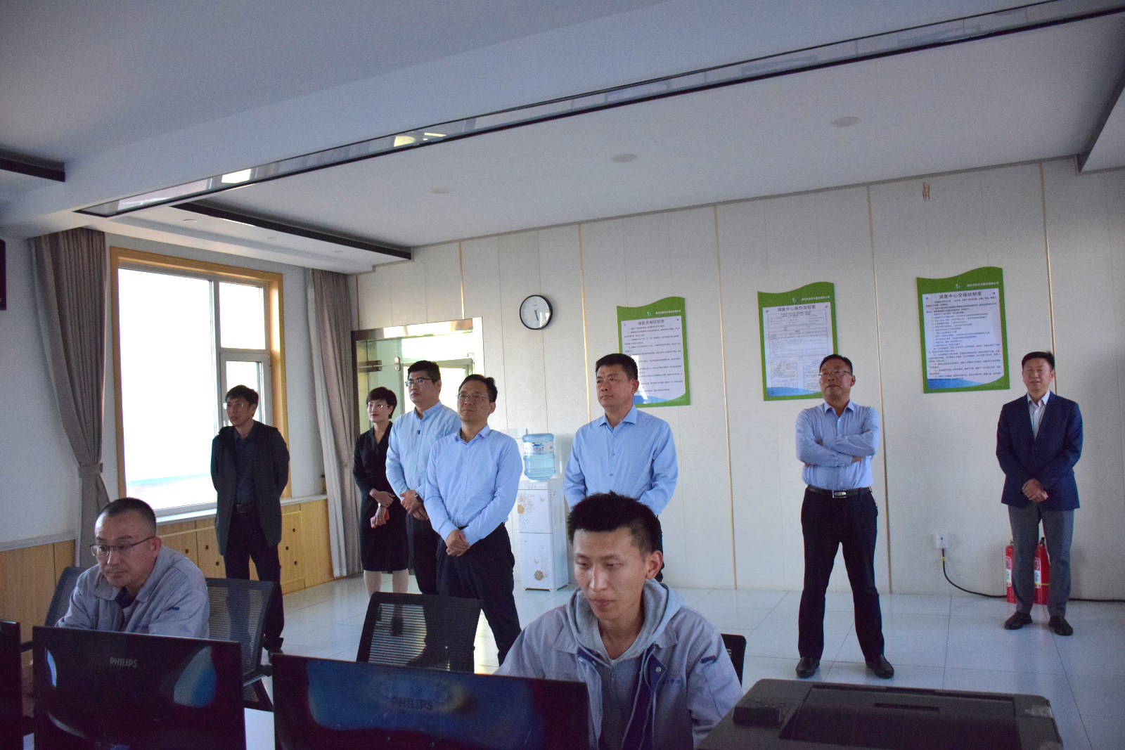 董增吉一行實地考察了供水集團(tuán)濱海第二平原水庫、黃水東調(diào)濰北二庫加壓泵站、供水集團(tuán)智慧水務(wù)平臺運(yùn)行情況,詳細(xì)聽取了濰坊區(qū)域調(diào)水工程布局及未來規(guī)劃情況的講解。