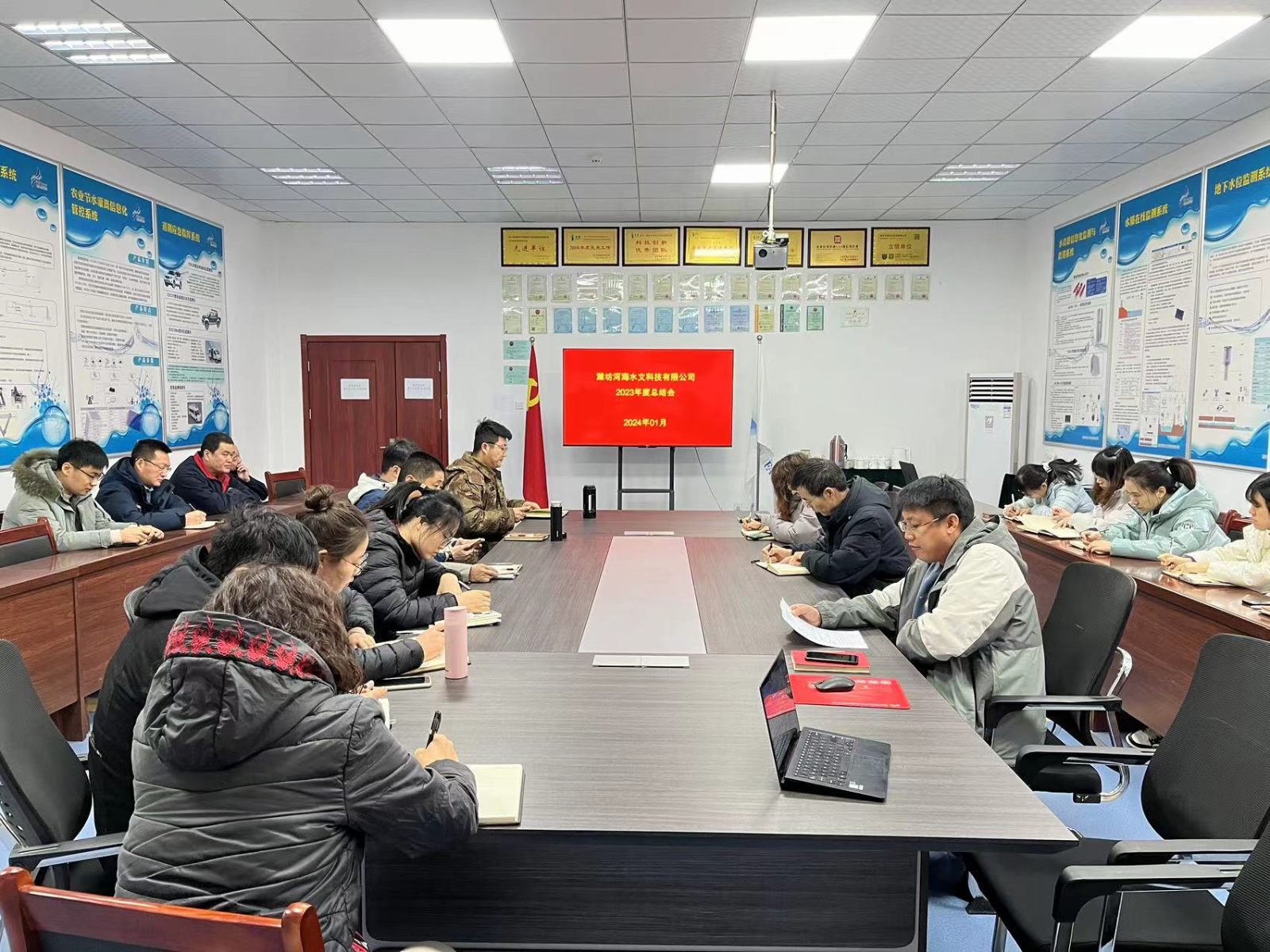 1月2日,濰坊河海水文科技有限公司組織全體員工召開2023年度總結(jié)會,對2023年工作進行回顧、反思,對2024年工作進行規(guī)劃。董事長龐明濤及全體員工參加會議。